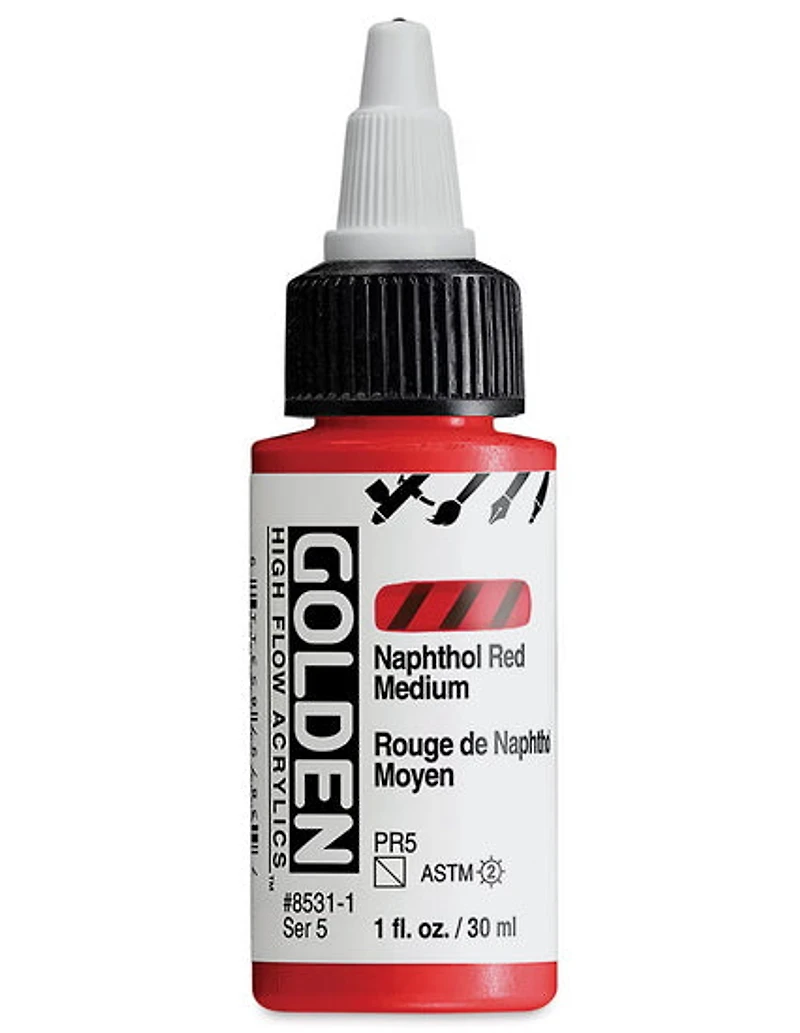 Compatible avec marqueurs rechargeables, stylos à encre et stylos techniques, la peinture Golden High Flow Rouge Naphtol Moyen garantit un contrôle précis, un flux optimal et des couleurs intenses pour tous vos projets artistiques.