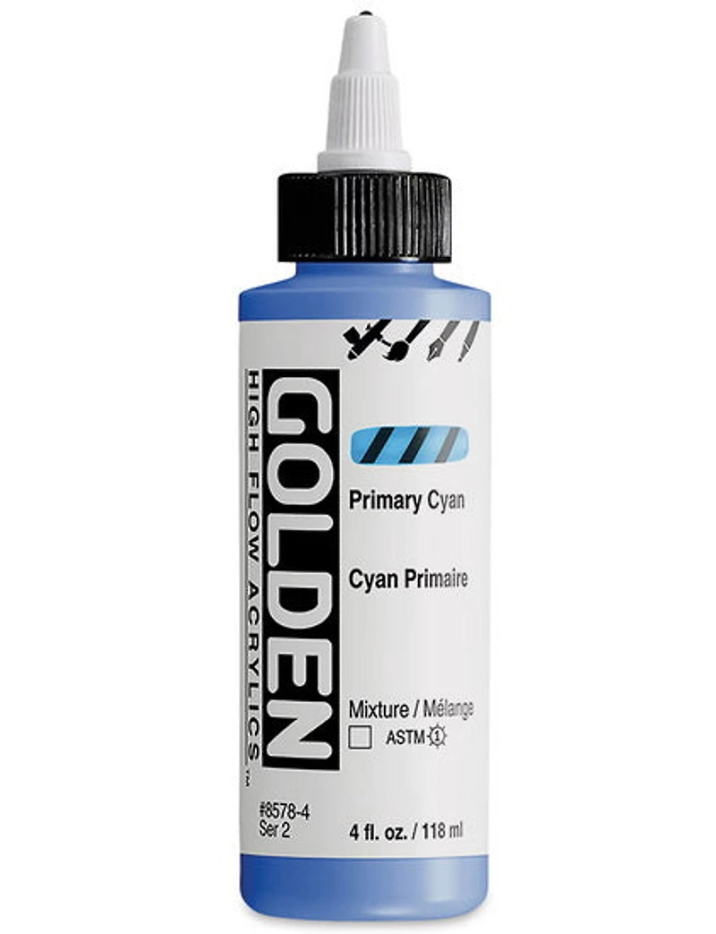 Compatible avec marqueurs rechargeables, stylos à encre et stylos techniques, la peinture Golden High Flow Cyan Primaire offre un contrôle remarquable et une couverture régulière, parfaite pour les travaux détaillés comme pour les compositions plus larges.