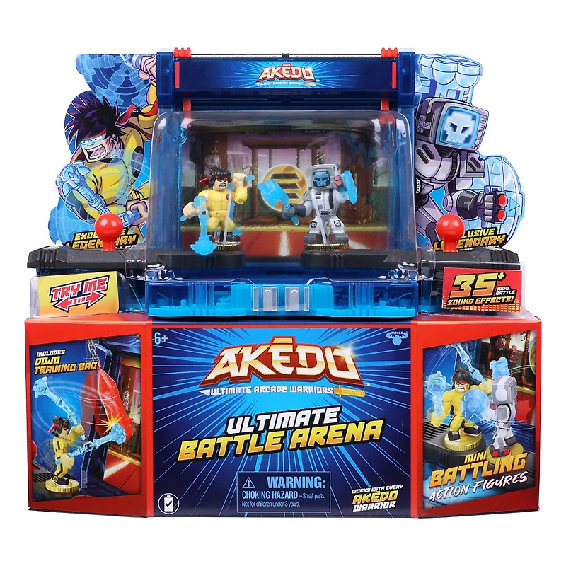 Entrez dans l'Ultimate Battle Arena pour devenir l'Ultimate Arcade Warrior ! C'est l'action de combat de niveau suivant. Choisissez votre guerrier, combattez avec fureur et terminez-le avec un Split Strike ! - JEU TERMINÉ! Affrontez et défiez vos amis dans cette superbe arène de combat. Cette scène de combat "Arcade Inspired" comprend 2 guerriers légendaires exclusifs : Turbo Chux Lee et une capture d'écran. Placez-les sur leurs contrôleurs de combat et que la bataille commence ! Pendant que vous vous battez, écoutez plus de 35 vrais effets sonores de combat sortir de l'arène ! Choisissez parmi 2 arrière-plans d'arène différents pour combattre devant. Utilisez les curseurs du tableau de bord en haut de l'arène pour garder le score. L'Ultimate Battle Arena fonctionne avec plus de 38 figurines de combat Akedo Mini afin que vous puissiez organiser votre propre tournoi Akedo ! Vos guerriers feront-ils partie de l'équipe gagnante et deviendront-ils Legends of Akedo ? Mais attendez! Ce jouet électronique Arena se transforme également en Ultimate Akedo Dojo ! Passez en mode Entraînement et connectez l'accessoire Sac d'entraînement Dojo pour que vos guerriers puissent s'entraîner et pratiquer le parfait Split Strike. C'est l'heure de la VRAIE action de combat "Next Level" ! AVERTISSEMENT - Risque d'étouffement - Le jouet contient de petites pièces et de petites balles. Pas pour les enfants de moins de 3 ans