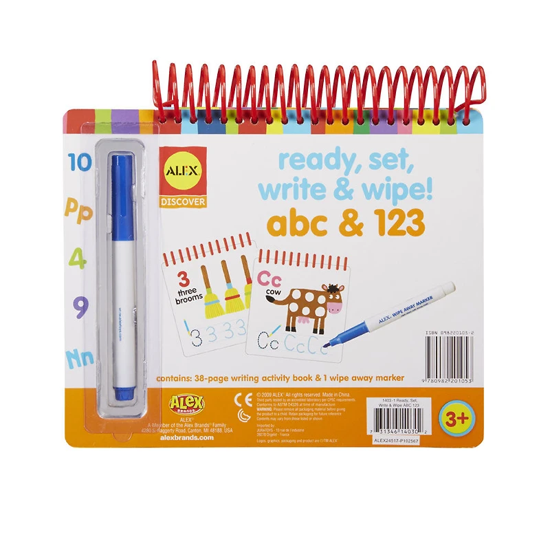 Prêt pour écrire et effacer! ABC et 123 ALEX Toys Little Hands est une façon amusante d'introduire votre enfant aux lettres et aux chiffres! Ce livre comprend des pages effaçables pour que votre enfant puisse s'exercer encore et encore! Idéal pour la voiture et en voyage.