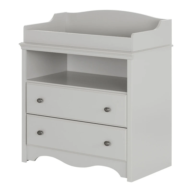 Espace de rangement ouvert facile d'accès 2 tiroirs pratiques avec coulisses de métal Matelas à langer et accessoires non inclus Doit être complètement assemblé par 2 adultes (outils non inclus) Formes arrondies et panneau frontal pour une sécurité accrue Boutons de métal au fini vieux fer Parfait pour les bébés jusqu'à 30 lb Emballage testé et certifié afin de réduire les risques de dommage lors du transport Fabriqué au Canada à partir de panneaux de particules laminés non toxiques Garantie limitée de 5 ans. Des questions? Contactez Meubles South Shore, disponible 7/7 : 1 800 290-0465 ou www.southshore.ca Cette table à langer pratique s'intègre vraiment bien au décor que vous avez déjà longuement imaginé pour la chambre de votre petite cocotte. Elle a été conçue pour les futures mamans qui désirent créer une chambre calme tout en douceur et en pastel, ou encore celles qui désirent une touche de fantaisie et une pièce très colorée. Les seules limites sont celles de votre imagination! Assortiment élargi disponible en ligne. Cet article n'est pas disponible en magasin.