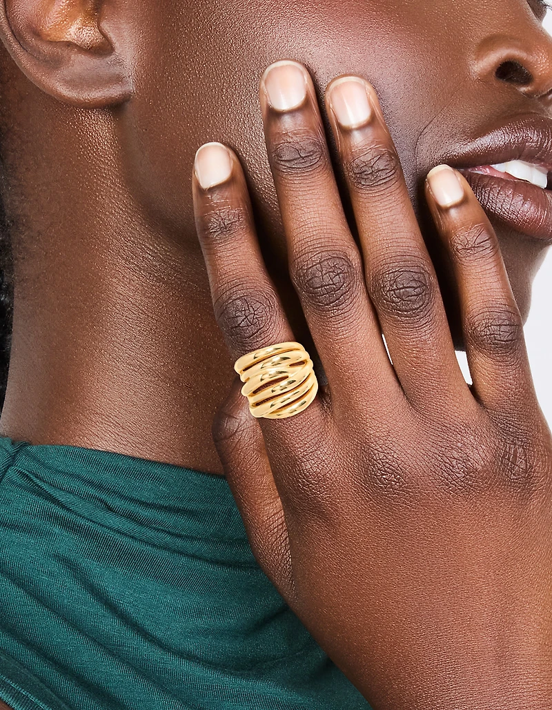 Transformez chaque jour en un moment de style avec cette bague en acier inoxydable étanche, plaquée or et à ligne empilée audacieuse. Cette bague audacieuse en couches est un bijou moderne et à la mode qui rend aussi bien avec un jean et un t-shirt qu’avec un blazer ou une robe de fête. Le design des lignes empilées lui donne un look élégant et affirmé, tandis que l’acier inoxydable plaqué or ajoute une finition polie. Fabriqué en acier inoxydable, cet anneau imperméable est conçu pour supporter la sueur, la baignade et la douche, afin que vous puissiez porter votre accessoire préféré du matin au soir sans craindre de l’enlever. Matériau : Plaqué or, Acier inoxydable Couleur : or Dimensions : Diamètre 17,5 mm x Largeur de bande 8 mm Imperméable/résistant : Les pièces imperméables de cette collection sont fabriquées en acier inoxydable, C’est-à-dire qu’ils sont à l’épreuve de la sueur, de la baignade et de la douche!