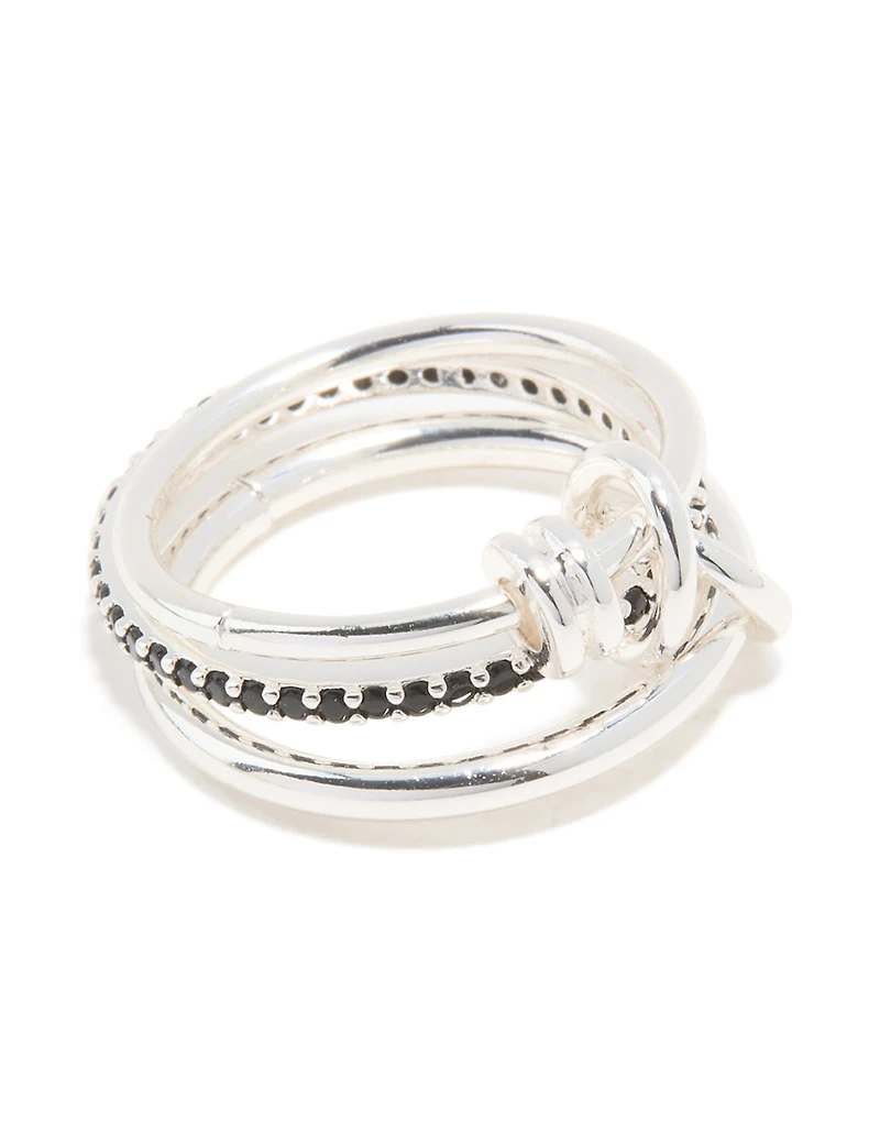 Anneau de Rondell empilé en zircone cubique noir plaqué argent