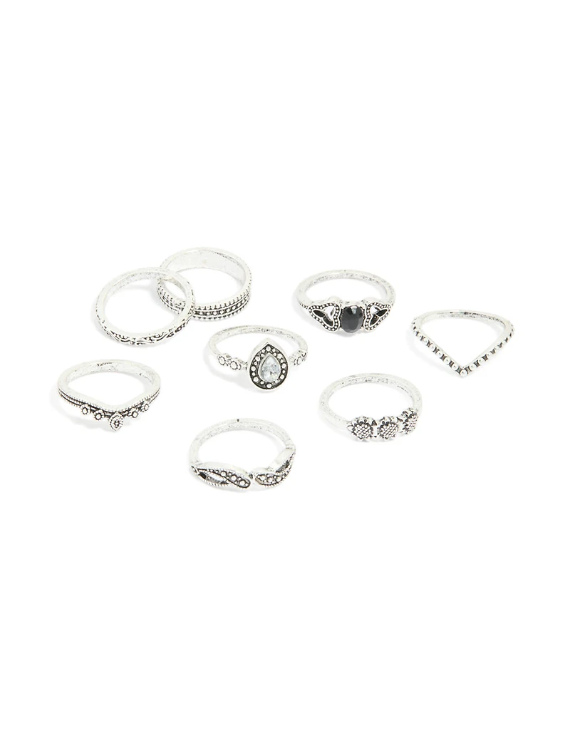 Ajoutez une touche de charme vintage à votre look avec ce pack de bagues sigilles en diamant argenté antique. Ce magnifique ensemble de bijoux comprend un mélange de motifs texturés et détaillés, allant d’une bague en os de souhaits à un trio de tournesols et une pièce aux motifs ondulés. Avec des tons argentés anciens, des gravures complexes et un centre de table en zircone cubique, ces anneaux sont parfaits pour les mélanger et assortir. Que vous vous habilliez pour une soirée ou que vous ajoutiez du style à votre tenue de tous les jours, ces bagues polyvalentes sont indispensables. Associez-les à une robe fluide pour une ambiance bohème ou combinez-les avec vos looks décontractés préférés pour un style sans effort. Parfait pour tous ceux qui aiment les bijoux uniques et marquants! Matériau : Zircone cubique Couleur : Argent, Transparent Dimensions : Diamètre 18,5 mm x Largeur de bande 1 mm Dimensions de la caractéristique : Largeur de la caractéristique : 9 mm