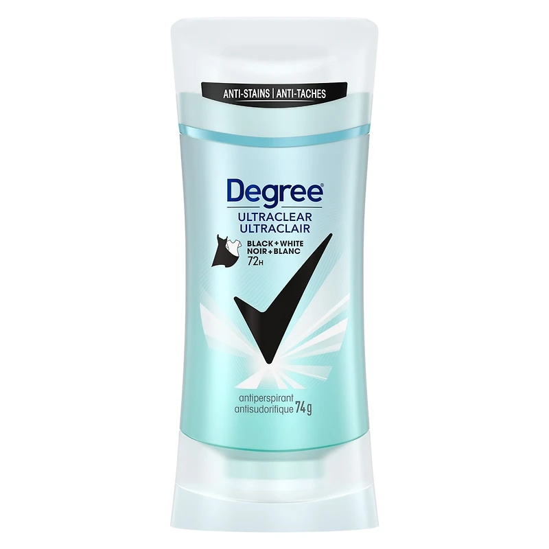 - L'antisudorifique en bâton Degree for Women Ultraclear Black+White offre une protection efficace contre la transpiration en libérant des bouffées de fraîcheur à chaque mouvement. Cet antisudorifique ne laisse ni marque blanche sur les vêtements noirs, ni tache jaune sur les vêtements blancs. Notre bâton antisudorifique pour femmes offre une protection durable de 48 h contre les odeurs. La technologie MotionSense utilisée dans notre antisudorifique vous permettra de rester fraîche à chaque mouvement. La technologie de notre antisudorifique vous protège des odeurs durant les activités à impact élevé. Restez fraîche et confiante tout au long de la journée grâce à notre antisudorifique en bâton.