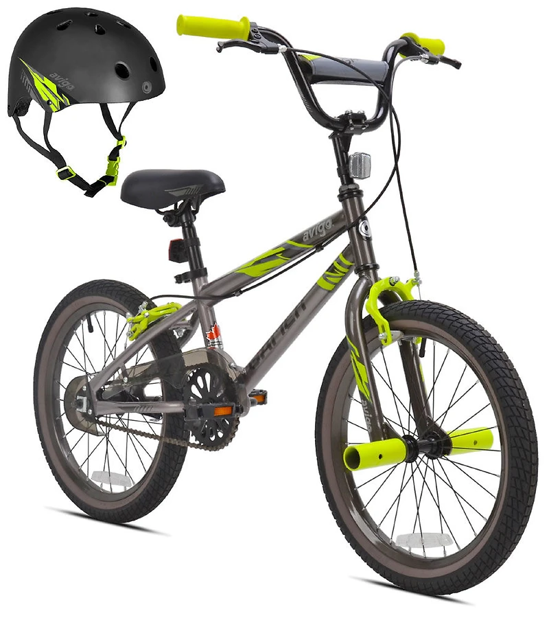 Un casque assorti est inclus avec ce vélo Avigo Gamer 18 po! Des freins à main avant et arrière en acier sont aussi inclus pour un freinage plus puissant. Des repose-pieds avant pour faire des tricks sont inclus et peuvent être également installés à l'arrière du vélo. Le siège et le guidon s'ajustent pour le confort du cycliste. Ce vélo est parfait pour les parcs, le street et pour s'amuser!