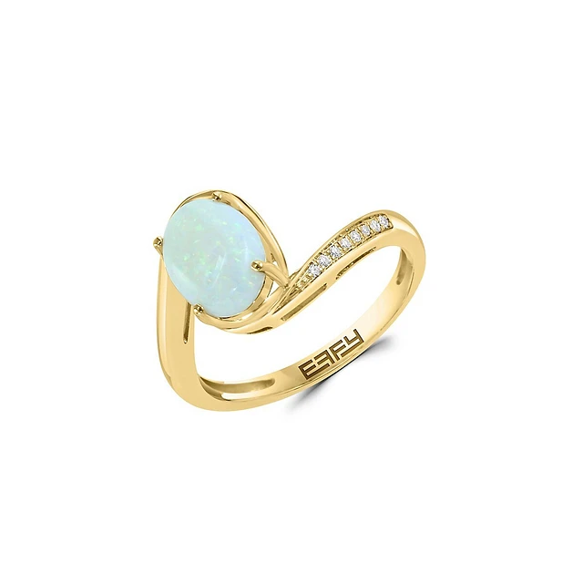 Bague en or jaune 14 carats, opale et diamant de 0,03 ct. TW