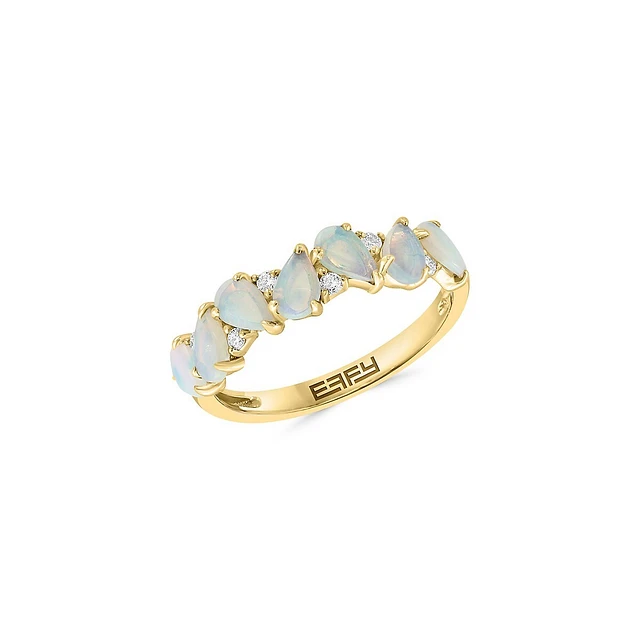 Bague en or jaune 14 ct, à diamants 0,09 ct (PT) et à opales