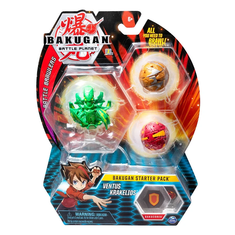 Le Starter Pack Bakugan contient tout ce dont vous avez besoin pour rouler vers la bataille ! Agrandissez votre collection avec deux épiques Bakugan, un puissant Bakugan Ultra, six BakuCores, sans oublier des cartes Personnage et des cartes Maîtrise (tous inclus). Faites rouler vos Bakugan sur les BakuCores fournis pour assister à une Baku-Action SURGISSANTE, ou choisissez votre Bakugan Ultra pour une transformation BONDISSANTE encore plus dynamique ! Vous pouvez même ajouter de nouveaux personnages à votre Starter Pack et collectionner plus de 100 Bakugan saison 1 ! Agrandissez votre collection, faites des échanges avec vos amis et BATTEZ-VOUS ! Roulez vers la bataille avec le Starter Pack 3 personnages Bakugan Battle Brawlers ! AU COMBAT, LES BAKUGAN !