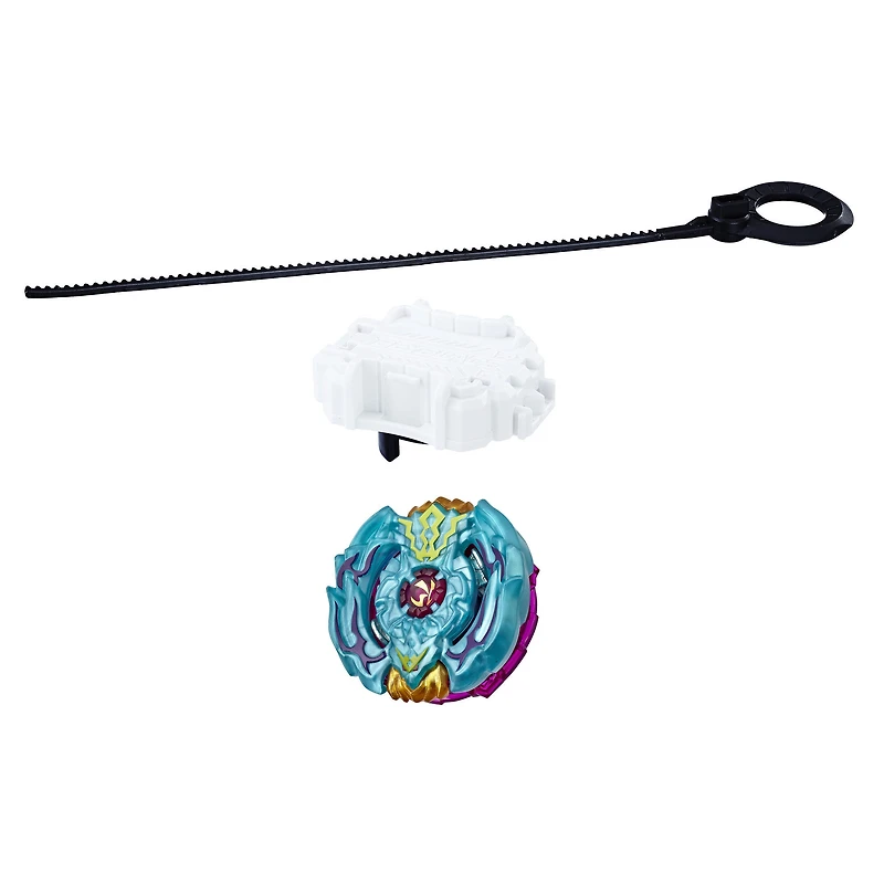 Inclut un propulseur Beyblade Burst SwitchStrike à rotation droite et une toupie Beyblade Burst SwitchStrike à rotation droite/gauche constituée des composants Beyblade Burst suivants :