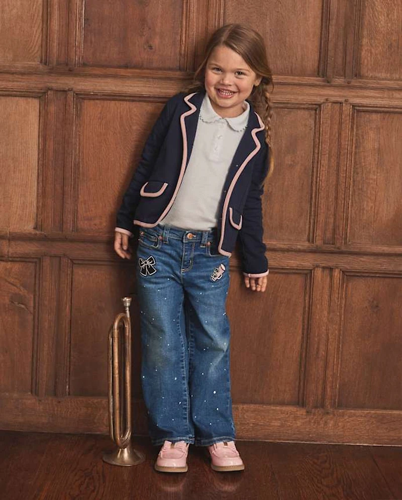 Blazer en point de Rome à bordure contrastante pour fille - Campus Cuties