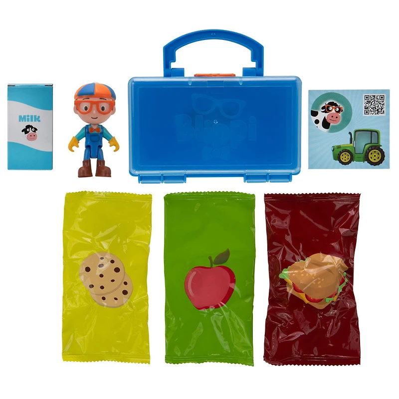 Blippi nous dit que nous pouvons devenir tout ce que nous voulons, alors soyons des fermiers! Regardez votre enfant explorer la carrière de fermier avec son ludo-éducateur préféré, Blippi. Le jouet Boîte à lunch surprise de Blippi est offert avec un jouet fermier Blippi de 7,6 cm dissimulé dans un carton de lait et des accessoires cachés dans d'autres emballages de repas. Devenez le fermier Blippi, qui a un chapeau de fermier, une brouette et du foin. Votre enfant adorera découvrir ce qu'il y a dans chaque boîte, tout comme il explorera un jour l'avenir qui l'attend. Cet ensemble comprend également une page d'autocollants de collection que votre enfant peut utiliser pour personnaliser sa boîte à lunch. Balayez le code QR pour voir l'incroyable vidéo de Blippi qui a inspiré cette boîte à lunch!
