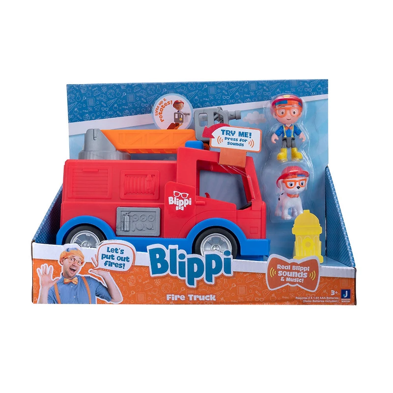 Placez Blippi sur le siège du conducteur et c'est parti! Le véhicule Camion d'incendie Blippi est l'ajout idéal à toute collection Blippi. Le camion d'incendie Blippi comprend une figurine de pompier Blippi de 7,62 cm. Placez les figurines Blippi et chien-feu à l'intérieur et partez. Cet impressionnant camion d'incendie est plein de surprises et votre enfant va les adorer! Soulevez et faites pivoter l'échelle du camion d'incendie pour sauver la journée. Vous pouvez même placer votre figurine de pompier Blippi ou votre chien-feu à l'intérieur de la nacelle. Appuyez sur les boutons de la sirène du camion pour entendre les sons et les expressions de Blippi. Ce camion d'incendie pour enfants est à roue libre pour que votre petit as de la vitesse puisse vraiment rouler. Ce camion d'incendie est inspiré d'un épisode de Blippi que votre enfant reconnaîtra. Il y a d'autres véhicules à collectionner! Trouvez-les tous.