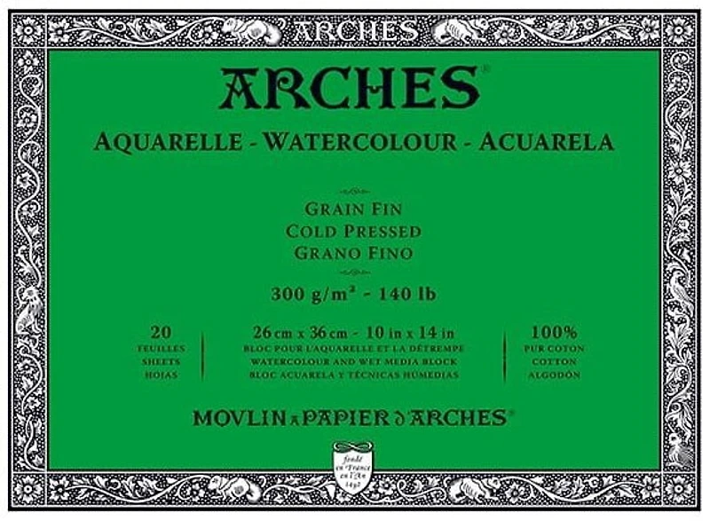 Papier d'aquarelle de qualité professionnelle collé sur quatre bordsqui peut absorber beaucoup d’eau, sans gondoler ni entraîner les couleurs.Une variété de formats idéals pour peinturer en plein-air.• 100 % coton• Fabriqué sur forme ronde– Collage à cœur à la gélatine naturelle• Grain fin, pressé à froid• 300g/m² (140 lb)• Avec réserve alcaline• Contient un agent anti-moisissure• Fabriqué sans acide ni azurants optiques• Idéal pour l’aquarelle, comme pour toutes les techniques humides telles que l’encre, la gouache et l’acrylique