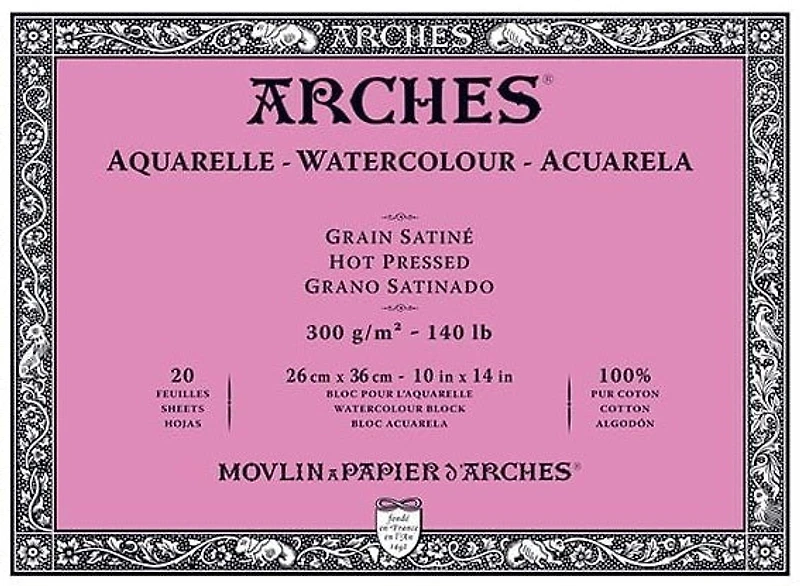 Papier d'aquarelle de qualité professionnelle collésur quatre bordsqui peut absorber beaucoup d’eau, sans gondoler ni entraîner les couleurs.Une variété de formats idéals pour peinturer en plein-air.100% cotonFabriqué sur forme ronde– Collage à cœur à la gélatine naturelleGrain fin, pressé à chaud300g/m² (140 lb)Avec réserve alcalineContient un agent anti-moisissureFabriqué sans acide ni azurants optiquesIdéal pour l’aquarelle, comme pour toutes les techniques humides telles que l’encre, la gouache et l’acrylique