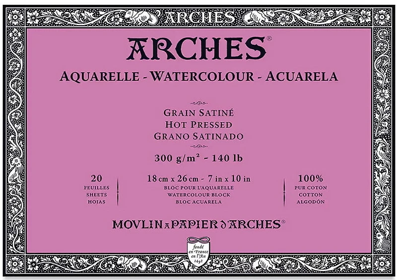 Papier d'aquarelle de qualité professionnelle collésur quatre bordsqui peut absorber beaucoup d’eau, sans gondoler ni entraîner les couleurs.Une variété de formats idéals pour peinturer en plein-air.100% cotonFabriqué sur forme ronde– Collage à cœur à la gélatine naturelleGrain fin, pressé à chaud300g/m² (140 lb)Avec réserve alcalineContient un agent anti-moisissureFabriqué sans acide ni azurants optiquesIdéal pour l’aquarelle, comme pour toutes les techniques humides telles que l’encre, la gouache et l’acrylique
