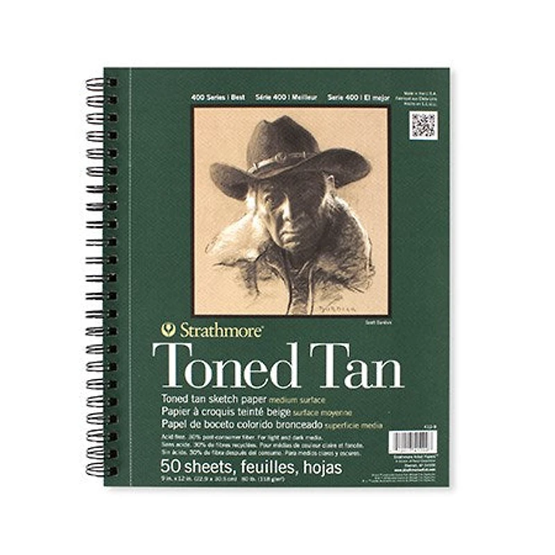 Papier à esquisse brun pâle de texture moyenne. Idéal pour les médiums clairs et foncés. Les pages microperforées sont reliées avec spirale. 100 % recyclé. Contient 30 % de fibres post-consommation. Sans acidePoids : 80 lb (118 g/m2)Nombre de feuilles : 50Dimensions : 9 po x 12 poSérie : 400 StrathmoreLes applications : graphite, craie, fusain, bâtonnets à esquisse, marqueurs, crayons de couleur, stylos et stylos à encre gel blancCaractéristiques : feuilles à reliure spirale microperforées, de taille réelle lors du retrait de la microperforation