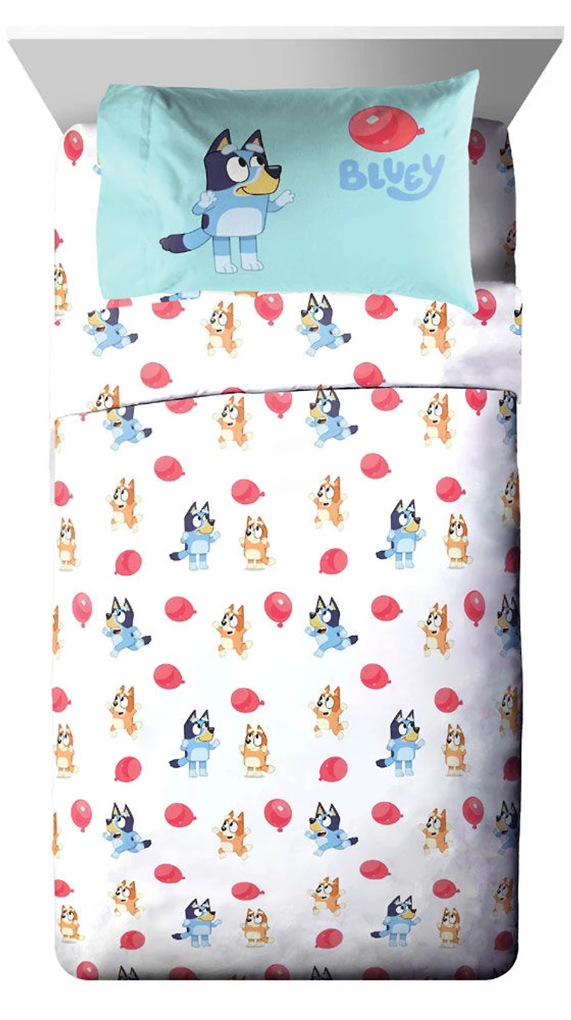 Bluey Ensemble de Draps 3-Pièces pour Lit 1 Place