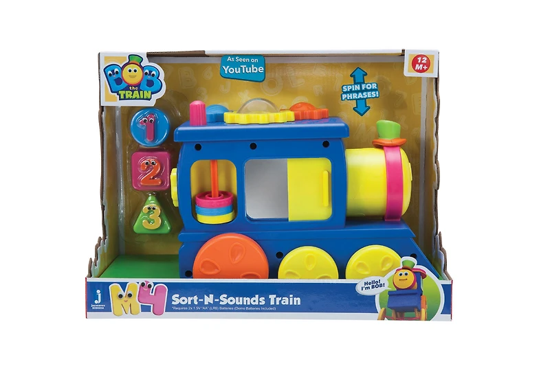 Les enfants adorent que le train Sort-N-Sounds de Bob le train arrive en ville! Les chansons, les phrases et les activités de sélection de formes engagent et divertissent pour des heures d'apprentissage amusantes! Les petits s'illuminent et sourient en entendant des mots et des airs familiers tirés des vidéos à succès vues sur YouTube! Faites rouler le train pour entendre "The Shapes Song" et tournez le cou de Bob pour écouter les phrases du spectacle! Comprend également des formes amovibles, des engrenages qui tournent, une porte coulissante avec miroir, des pièces de monnaie à hochet et une étoile en mouvement sur le dos de Bob!