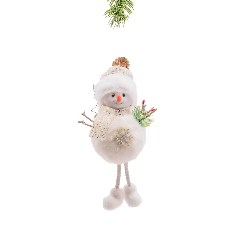 Bonhomme de neige en tissu rayé blanc et platine suspendu, ensemble de 8