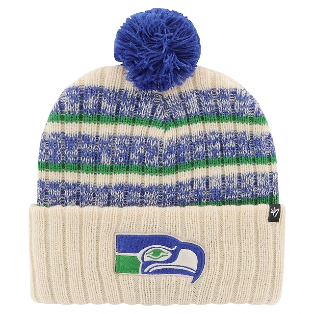 Bonnet en tricot à revers Legacy Tavern '47 naturel Seattle Seahawks pour hommes avec pompon