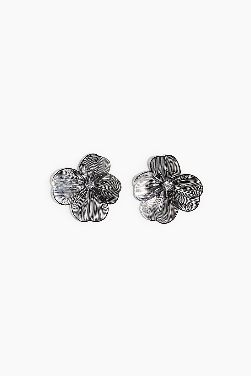 Boucles d'oreilles en métal sur tige. Modèle en forme de fleur ornée d'un strass étincelant au centre.