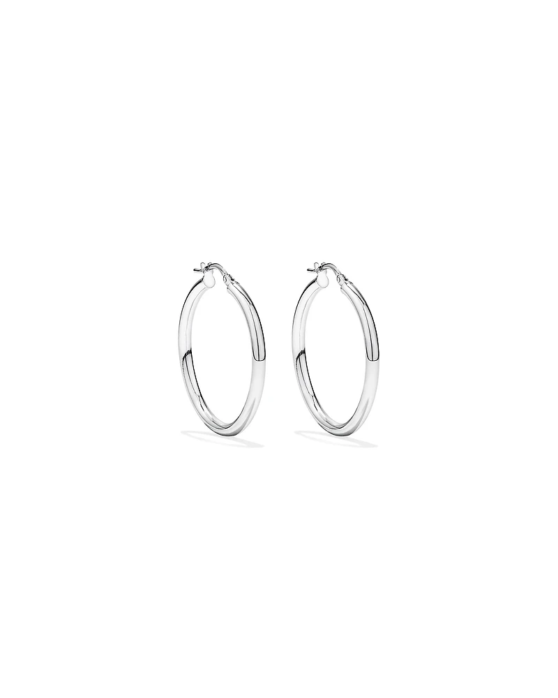 Fabriquées en argent sterling plaqué rhodium, ces boucles d’oreilles à cerceau classiques présentent un design tubulaire raffiné avec une finition polie. Un incontournable intemporel pour le style quotidien.