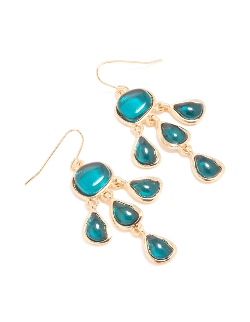 Boucles d’oreilles tombantes en pierre dorée Teal Stone à 3 couches