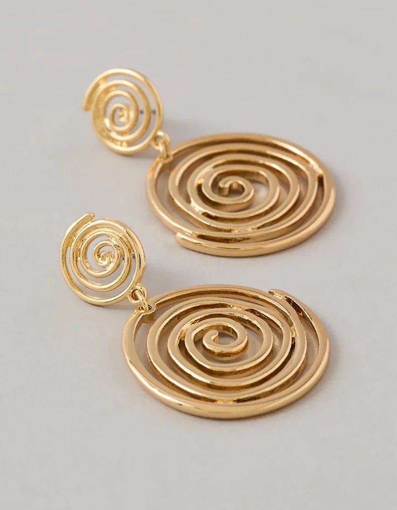 Une paire de boucles d’oreille tourbillon assumées.