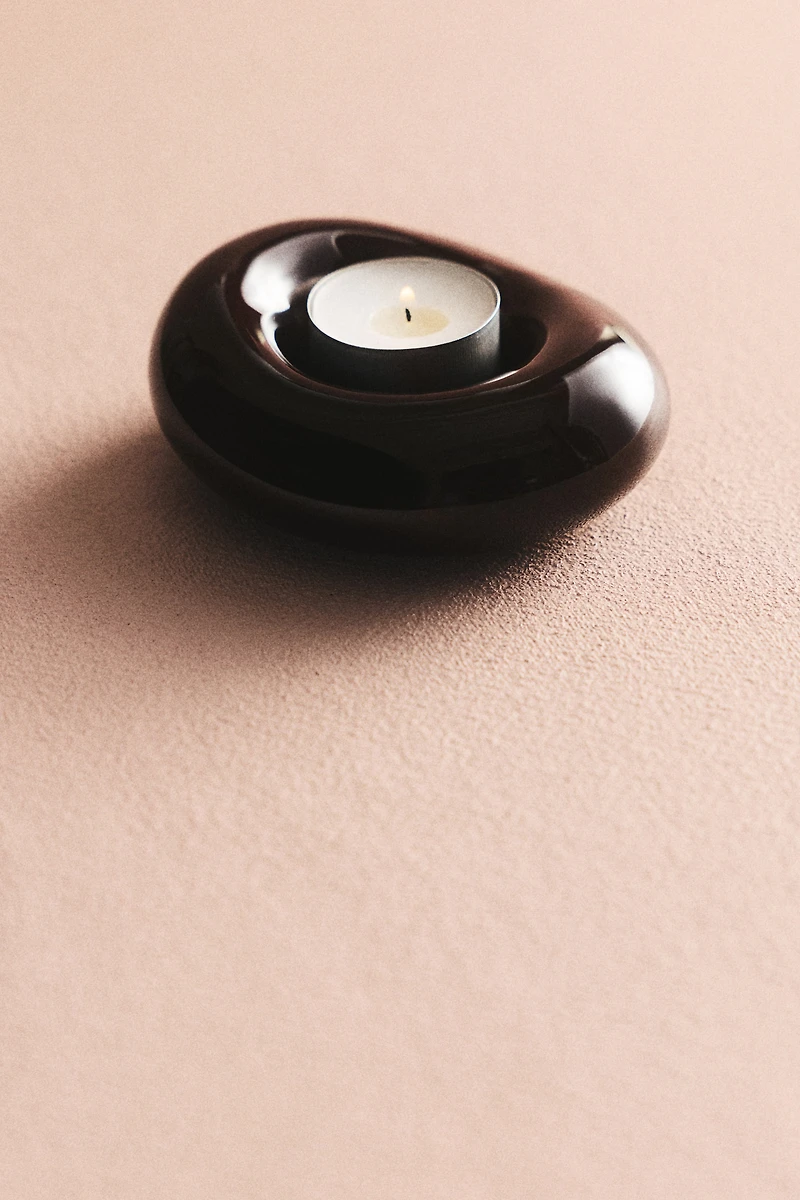 Bougeoir chauffe-plat en grès cérame recouvert d'une glaçure brillante. Modèle au design épais et organique.