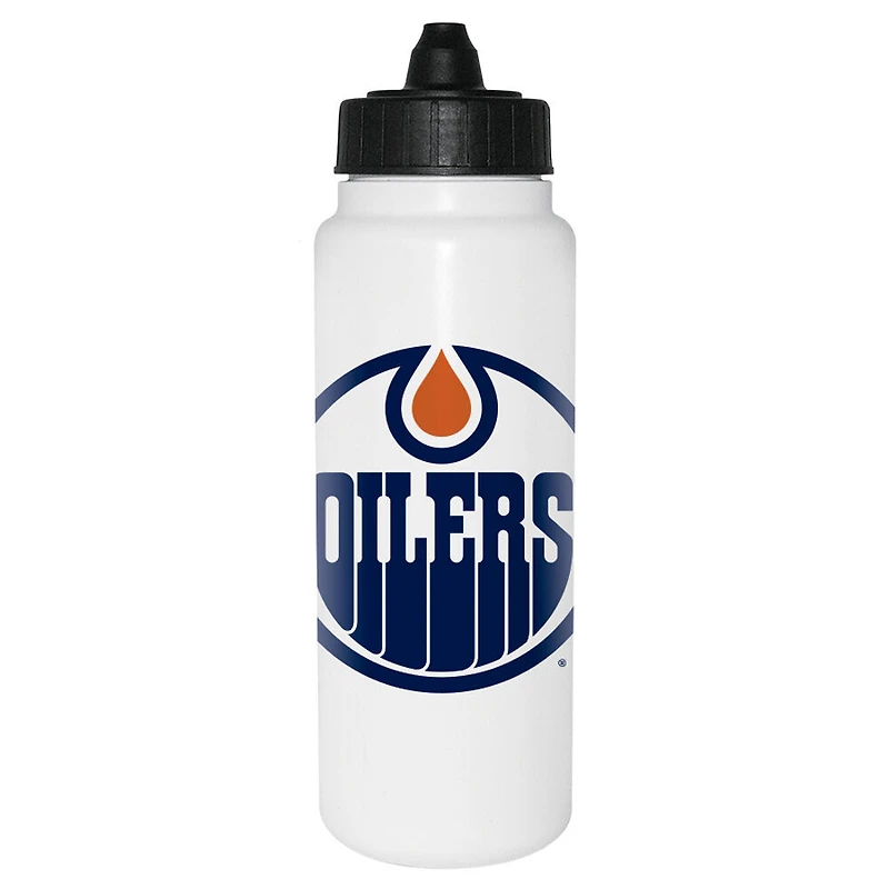 Bouteille 1000ml Tallboy blanc des Edmonton Oilers de la LNH avec bouchon membrane