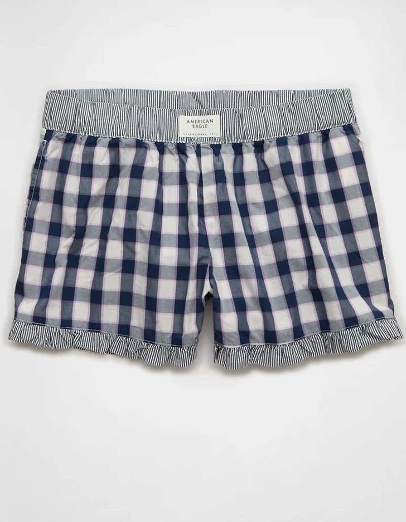Confectionné en popeline de coton fraîche et branchée, ce short boxeur confortable est doté d’un joli ourlet volanté.