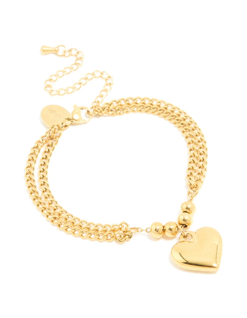 Bracelet à double rangée imperméable en acier inoxydable en forme de cœur