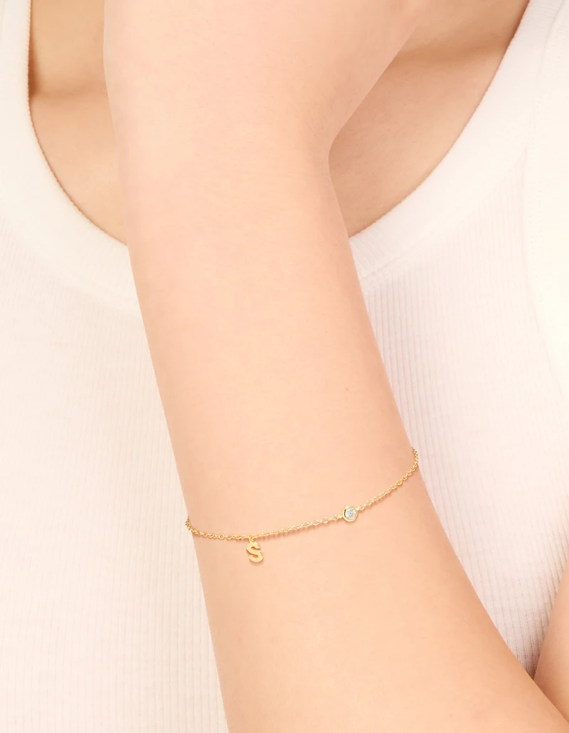 Rendez-le personnel avec ce bracelet en zircone cubique en argent sterling plaqué or avec la lettre S. Ce délicat bracelet lettre s ajoute une touche fraîche et élégante aux bijoux de tous les jours, avec des cristaux cubiques de zircone scintillants formant la lettre S sur un élégant argent sterling plaqué or. Portez votre initiale pour une touche mignonne et personnalisée, ou offrez-la à quelqu’un de spécial qui partage le S. Parfait avec un t-shirt et un jeans, un veston de travail ou une robe de fête, ce bracelet lettre s’harmonise magnifiquement avec d’autres bracelets plaqués or pour une pile détendue et tendance. Matériau : Zircone cubique, plaqué or, argent sterling Couleur : Or, transparent Dimensions : Longueur : 15 cm