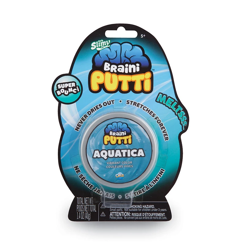Braini Putti super visqueux, fait de super bonds! Jamais n'avez-vous vu une matière bondir plus haut, plus follement et plus intensément que Braini Putti. Voyez la pâte fondre comme par magie sur toute surface, pour une expérience de jeu incroyablement amusante.