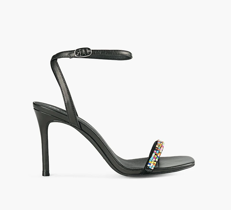 Pour les adeptes du minimalisme qui aiment la couleur, WISHBONE imagine les sandales Brandy. Arborant un profil à brides rappelant les silhouettes emblématiques des années 90, ce modèle repose sur un talon aiguille pour une touche spectaculaire. En guise de finition, sa fine bride supérieure est ornée de rangées de perles colorées, parfaites pour apporter une note vive à votre tenue.