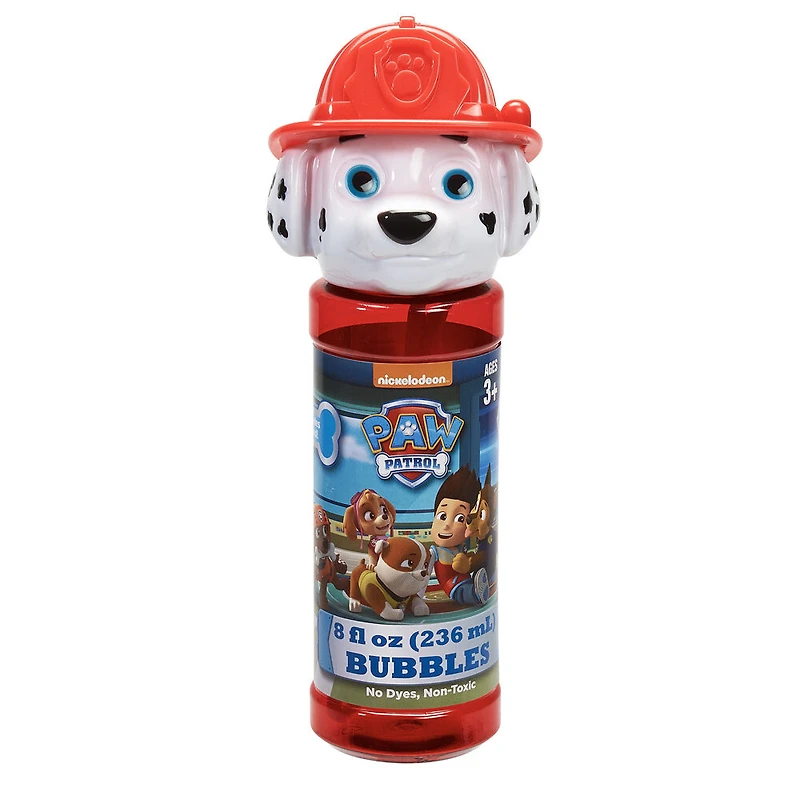 Maintenant, les enfants peuvent faire des bulles avec les personnages les plus populaire de Nickelodeon et de Sesame Street. Comprend Blue, Peppa, Paw Patrol, Pyjamasques et Elmo. Tête de figurine 3D entièrement décorée et sculptée en guise de surmatelas, et une étiquette graphique sur la bouteille. Surmatelas de forme entièrement sculpté offert en 9 styles / personnages pour que les enfants puissent tous les collectionner! Chaque bouteille comprend 8 oz(236ml) de solution à bulles et une baguette.