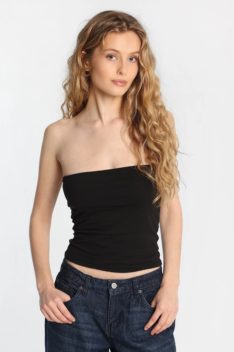 Tricot super doux. Haut en bustier. Ajusté partout. Disponible dans une sélection de couleurs et d'imprimés. Design réversible avec un point de couture invisible.
