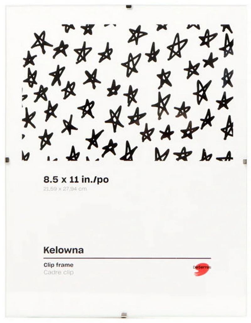 Le cadre à clip Kelowna présente un design sans cadre pour un style discret et polyvalent. Il vient avec une vitre en verre de 2 mm avec bords polis sécuritaires et un accrochage horizontal ou vertical. Le cadre parfait pour afficher vos documents, dessins, photos ou œuvres d'art sur papier. Un produit de qualité DeSerres qui offre un excellent rapport qualité-prix. Conçu et fabriqué au Canada. Emballage 100 % recyclable. DeSerres a développé son propre programme de responsabilité sociale : redonner. recycler. recréer.Informations additionnelles :