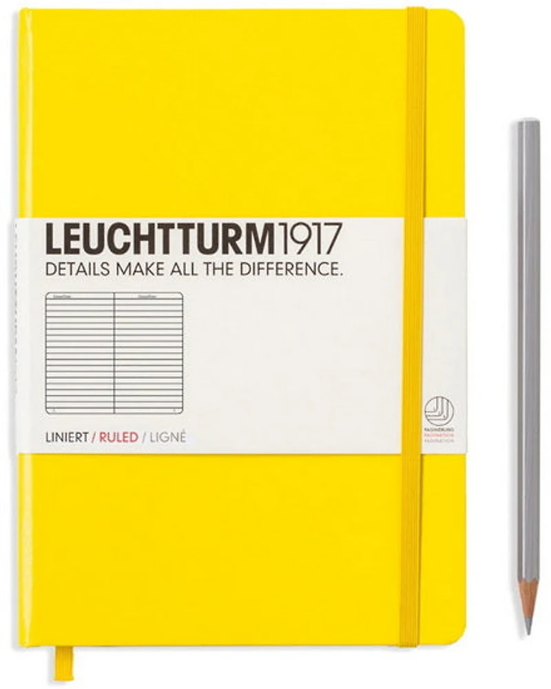 Un bon carnet de notes est indispensable. Ce carnet Leuchtturm a une reliure cousue et une couverture cartonnée aux angles arrondis, des pages numérotées, du papier sans acide, des autocollants pour étiqueter les pages, une pochette à soufflet, des marque-pages et une fermeture avec élastique. Grâce à la diversité des couleurs et tailles, ces carnets sont le compagnon idéal pour tous vos déplacements. Réglure : ligné8 feuilles détachables et perforéesPochette pliableTable des matières et pages numérotéesMarque-pagesFermeture élastiqueRelié par cahiers coususÉtiquettes pour inscriptions et archivage