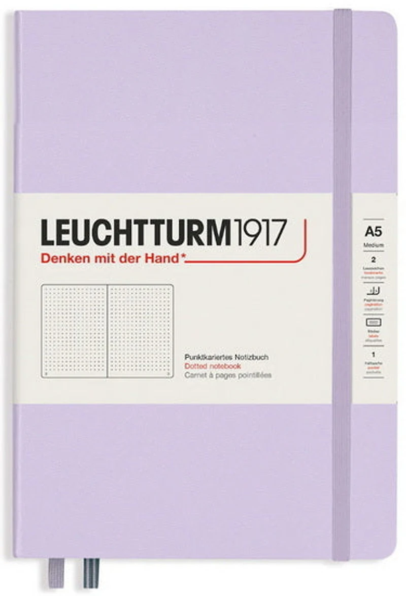 La collection Smooth Colours de Leuchtturm : quatre nouvelles couleurs qui vous invitent à explorer de nouvelles choses. Qu'il s'agisse de teintes douces comme vanille et olive, ou de couleurs captivantes comme lilas et océan, chacune des quatre couleurs possède une expressivité particulière.Le carnet de notes moyen A5 est doté des caractéristiques suivantes :pages numérotéespapier 80 g/m²2 marqueurs de pagetable des matières viergepochette8 feuilles perforées et détachablesbande élastique de fermeturereliure fil de fer, ouverture à platétiquettes