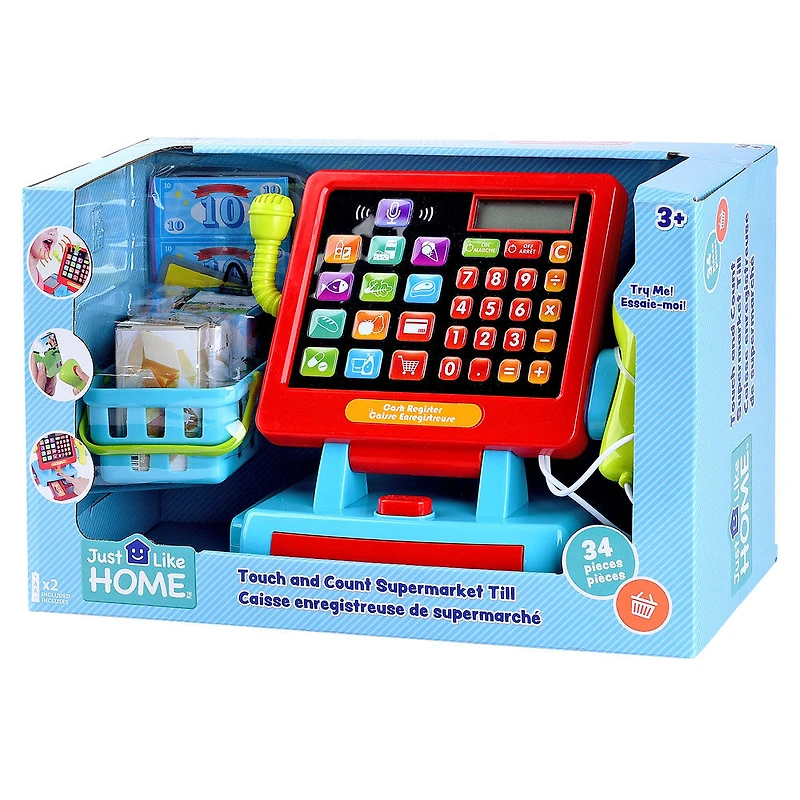 Caisse enregistreuse avec écran téctile fonctionnel, scanneur et lecteur de carte; encourage l'imagination et développe les compétences sociales ! 34 pièces Caisse enregistreuse de supermarché