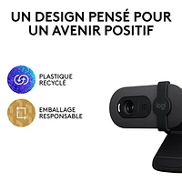 Caméra Web HD intégrale 1080p Brio 100 de Logitech avec microphone intégré - Graphite