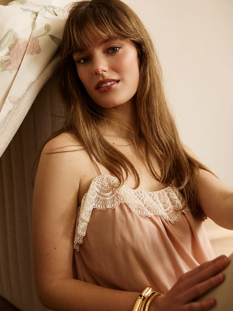 Camisole à ourlet bouffant avec bordure en dentelle