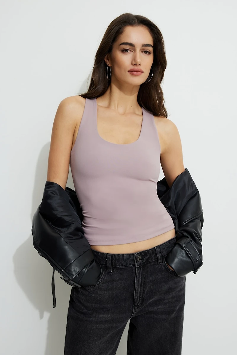 Cette camisole est conçue à partir de notre tissu Softform, une matière brossée douce qui sculpte votre silhouette. Agencez-la à un