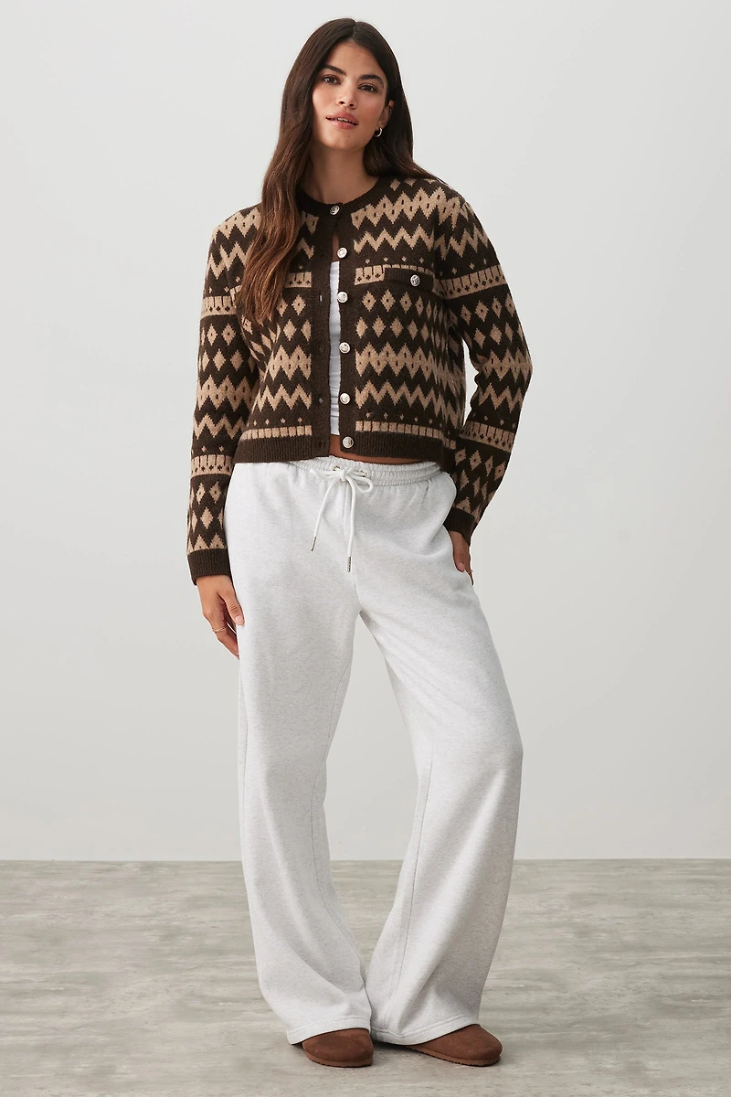 Cardigan court en tricot jacquard.