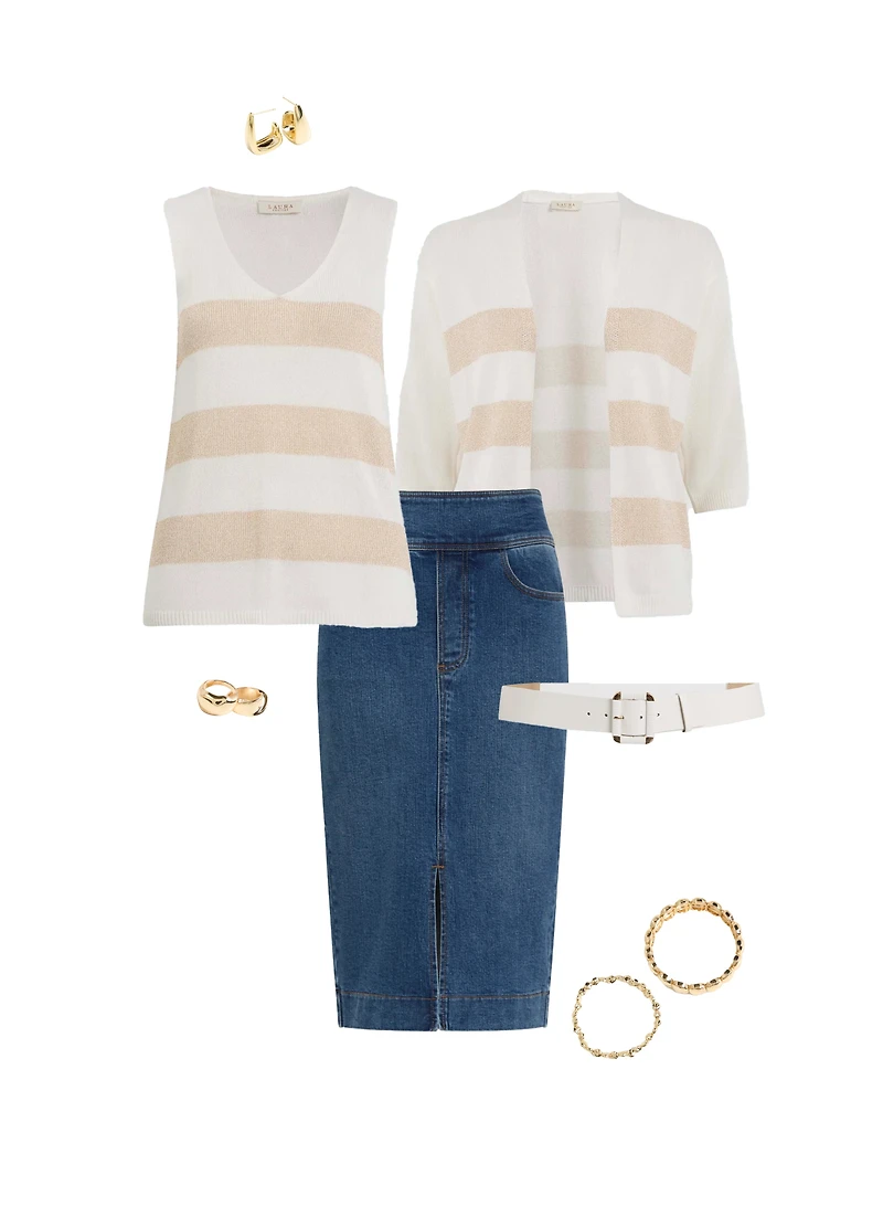 Cardigan rayé et jupe en denim