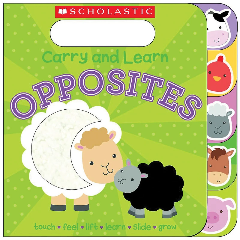 Carry and Learn Opposites met en vedette d'adorables animaux de ferme qui apprennent les contraires!