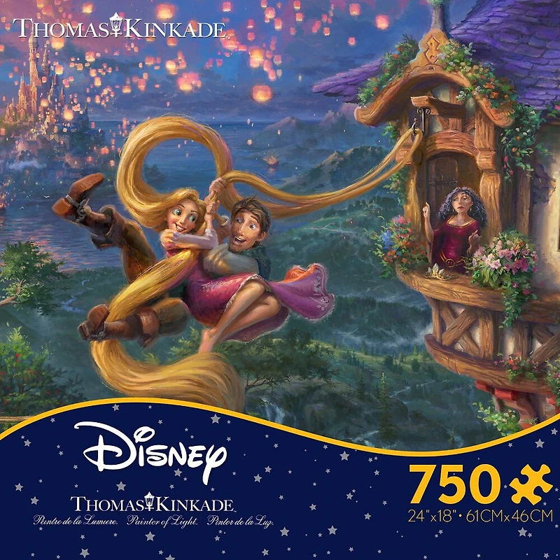 Thomas Kinkade Disney Collection est un groupe de peintures inspirées de grands moments de célèbres films de Walt Disney.Ce puzzle de 750 pièces présente une forme de scène Tangled.