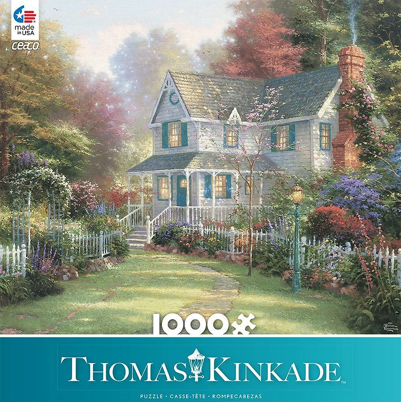 Casse-tête de 1000 morceaux. Casse-tête de Thomas Kinkade "Victorian Garden II". 27" x 20". Ces casse-tête démontrent la sérénité et la beauté de la nature chez les spectateurs. Chaque puzzle vous montre la tranquillité de ce qui nous entraîne dans la nature et nous amène à l'art de Thomas Kinkade. Fait un excellent cadeau!